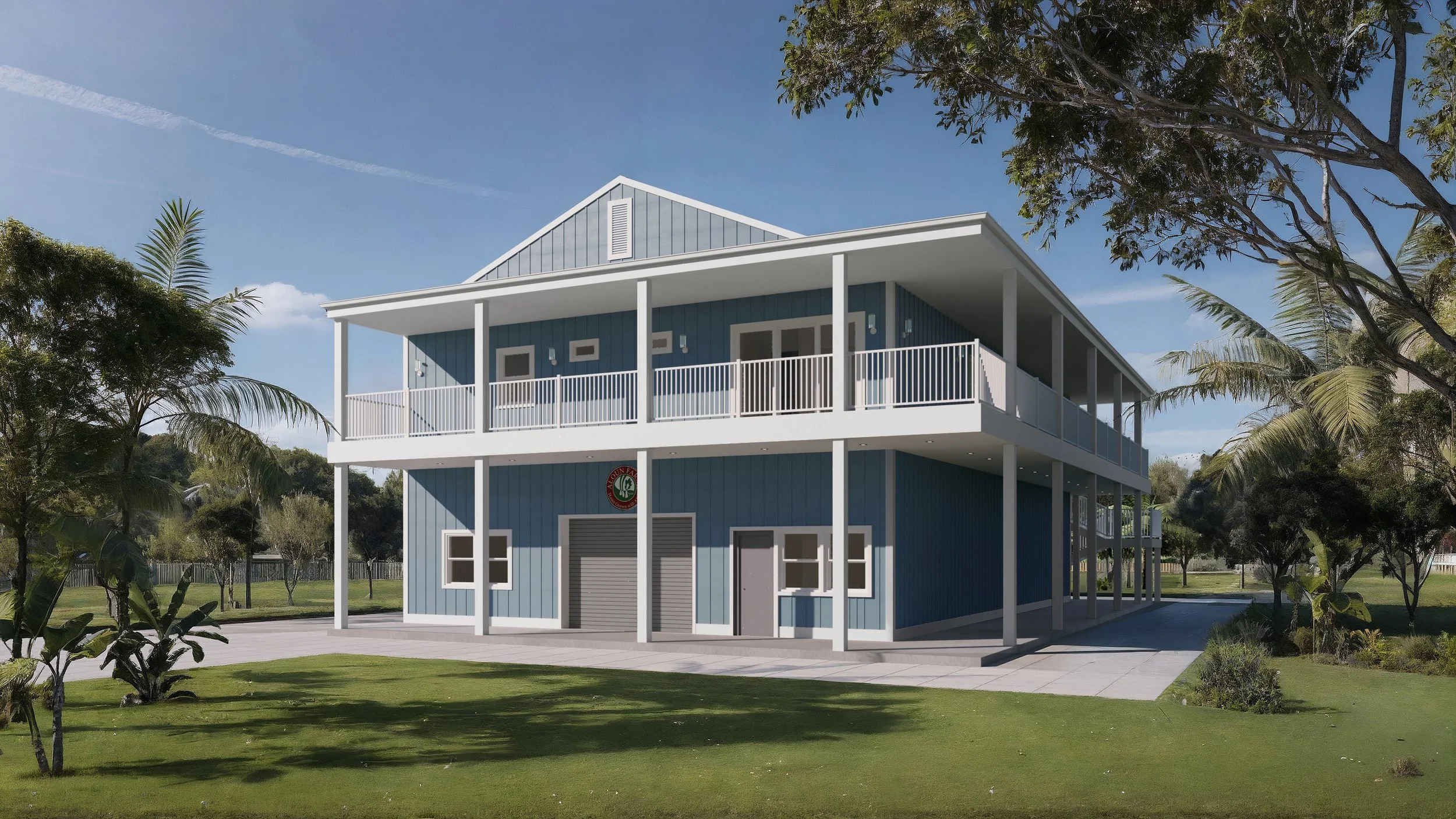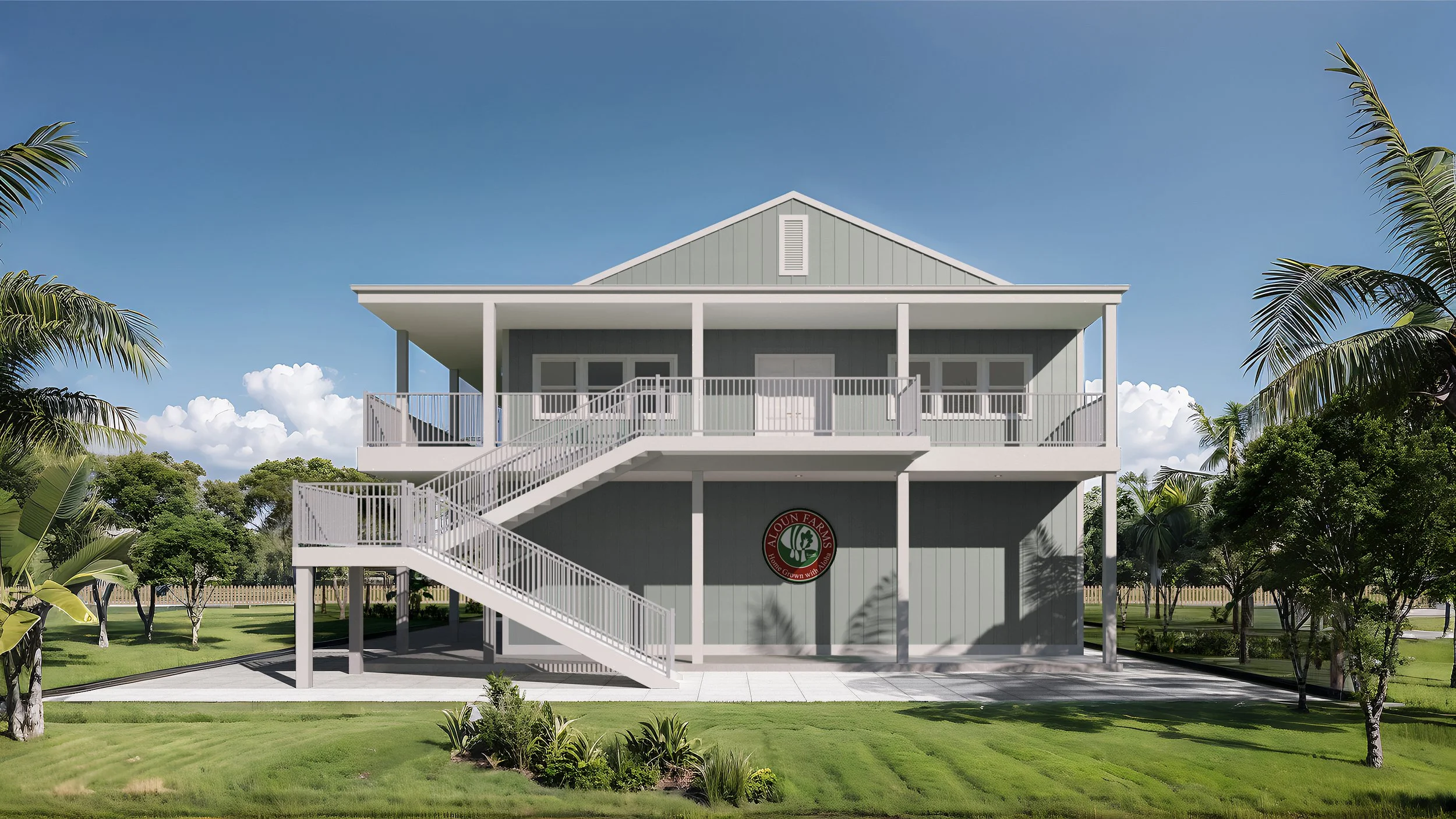 The Mushroom Farmhouse project is a multifunctional farm building. The ground floor is primarily dedicated to mushroom cultivation and includes areas for harvesting and packing mushrooms, a small office, and a public restroom. The second floor provides staff accommodations, featuring four bedrooms, three bathrooms, a living room, a dining room, a kitchen, and a laundry room. The total building area is 4,800 SF (excluding exterior corridors). The main structure is a steel frame, with interior wall panels constructed of light-gauge steel.